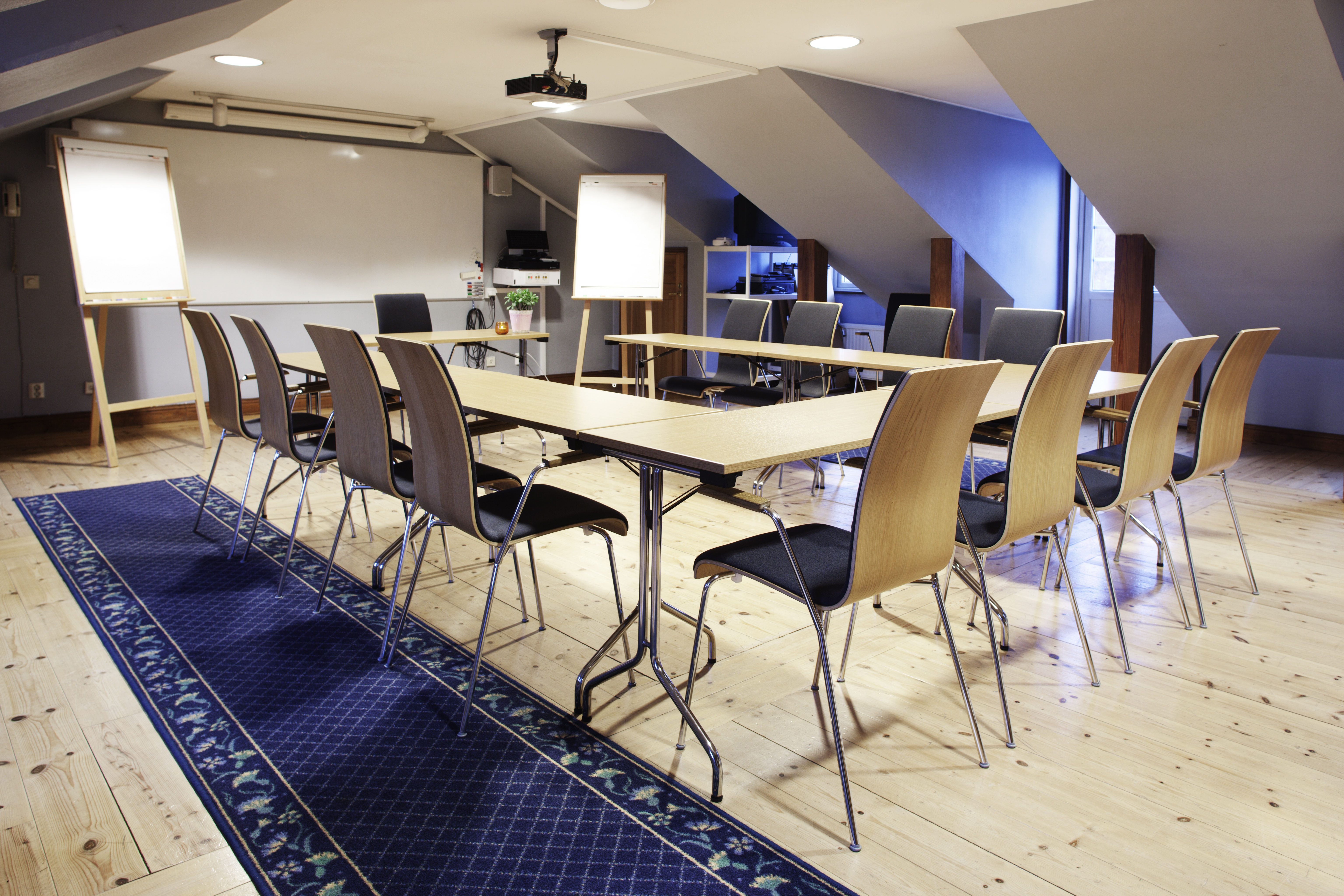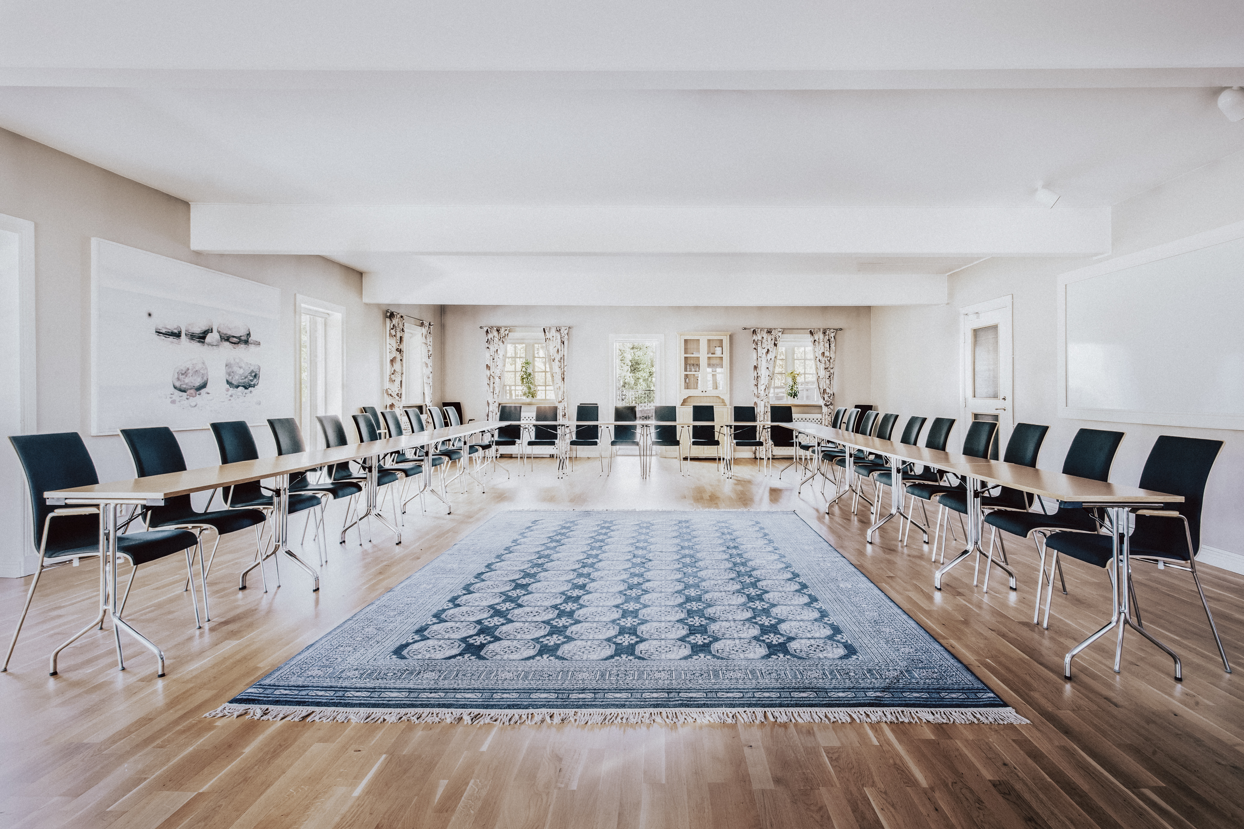Nästan alla konferenslokaler har utsikt över Mälaren och präglas av ljus, rymd och närhet till naturen. Flera av rummen har dessutom egna grupprum i direkt anslutning, vilket gör det enkelt att växla mellan gemensamma diskussioner och mindre möten.